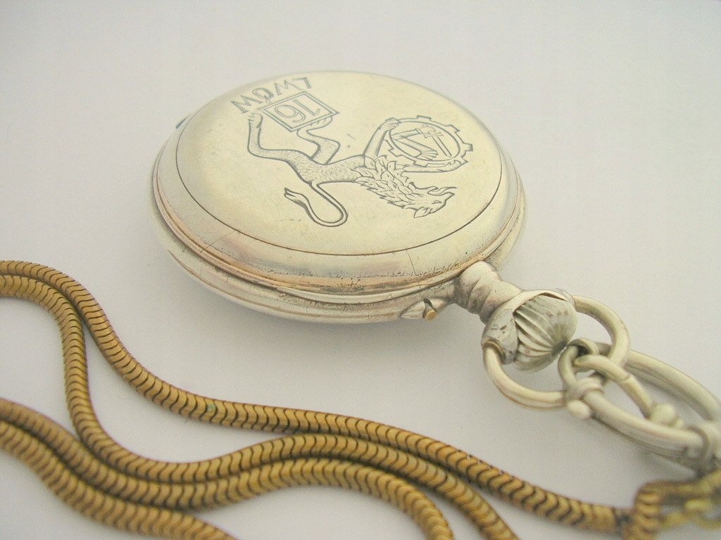 LWÓW IIRP polonik SREBRO 16 Batalion Strzelców zegarek kieszonkowy dewizka