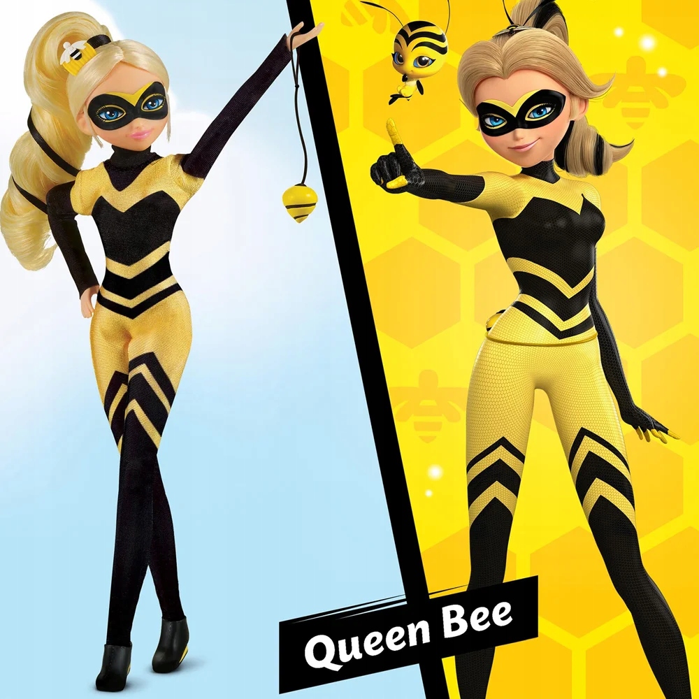 Представляємо ляльку Queen Bee з популярного серіалу Miraculous Ladybug and Cat Noir. Ця чарівна лялька — Хлоя Буржуа, однокласниця головної героїні Марінет. Хлоя, як королева-бджола, має потужні чудодійні здібності та носить костюм, натхненний бджолами. Її завдання — допомогти Леді Баг і Коту Нуару боротися зі злими персонажами та захистити місто Париж.