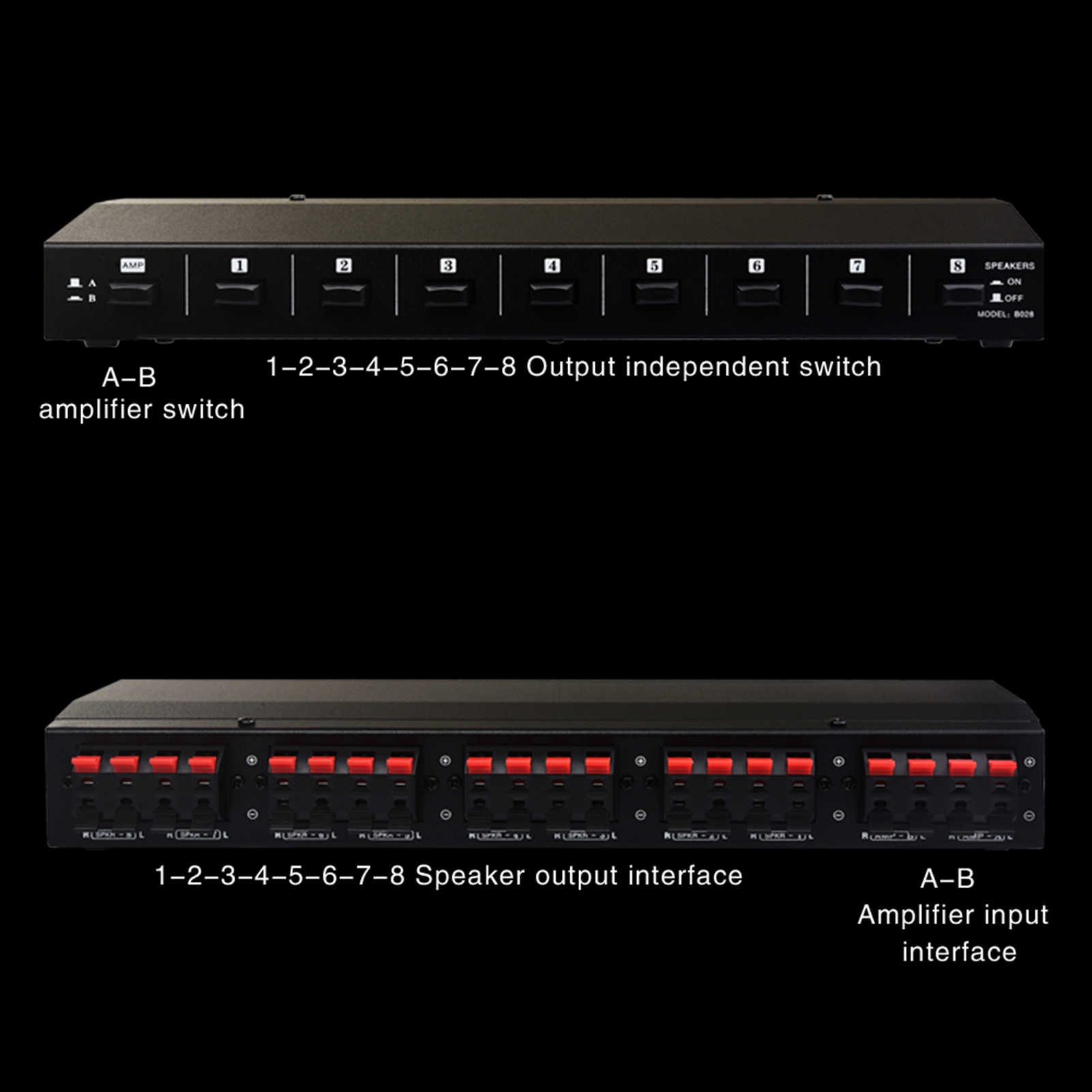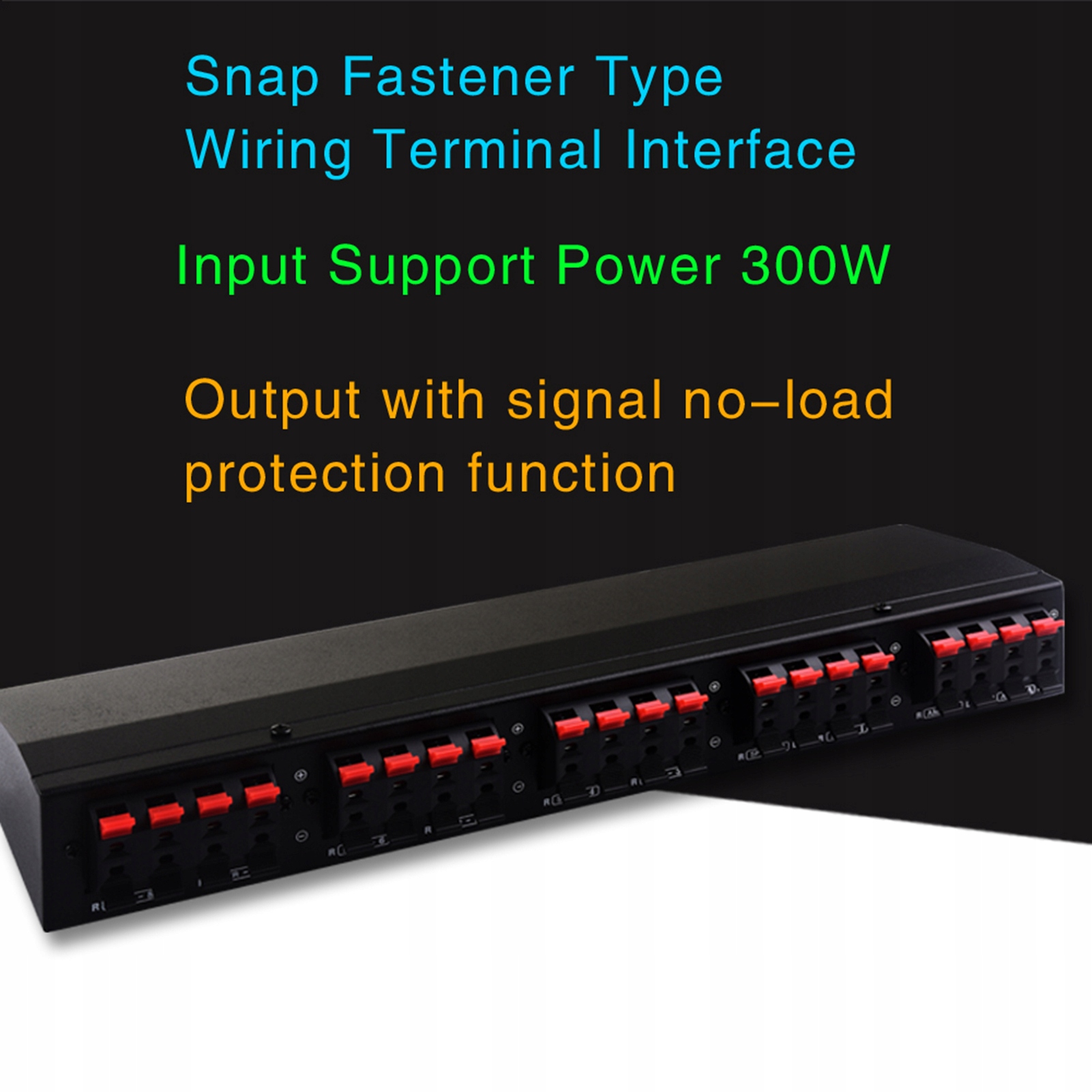 - Чи є у вас проблеми з підключенням 2 наборів підсилювача живлення та 8 наборів динаміків? Чи є у вас проблеми створення 2 наборів підсилювачів потужності та 8 динаміків для звуку одночасно? Один сильний підсилювач потужності та пристрій розподілу динаміків здатний вирішити вищезазначені проблеми. 4