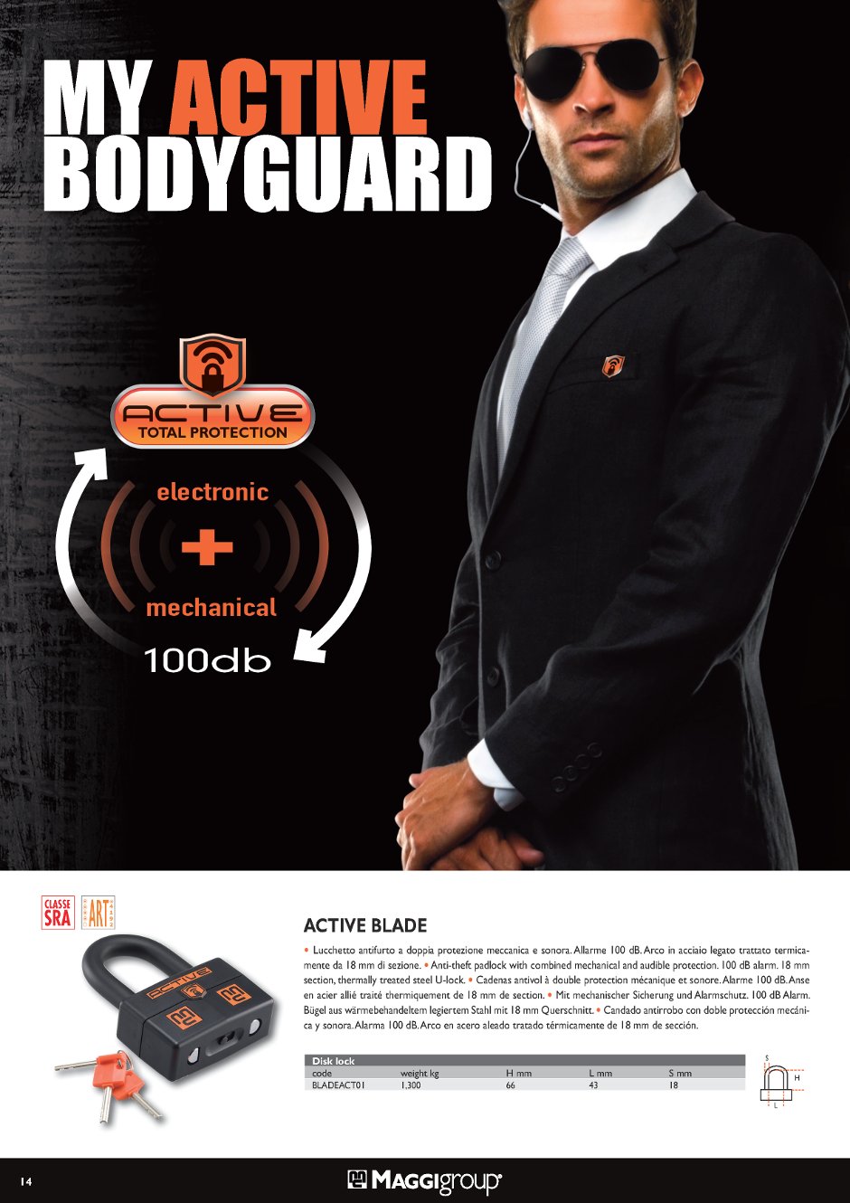 Безпека проти крадіжок мотоциклів, скутерів та велосипедів, вироблених maggi забезпечити високий рівень безпеки. Розроблений в Італії, виробленій відповідно до ISO 9001 , отримує сертифікати tüv, sra, nf .