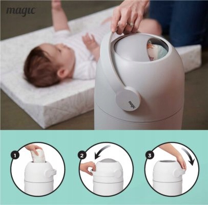 Єдиний у своєму роді, сучасний і неповторний дизайн ідеально впишеться в будь-який інтер'єр, залишаючи його завжди чистим і свіжим. Більше того, кошик використовується не лише для використаних підгузників! Коли ваша дитина підросте, кошик можна використовувати для сміття/відходів.