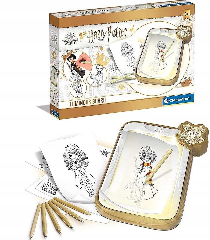 Завдяки сяючій дошці ви можете легко скопіювати на папері креслення Гаррі Поттера та персонажів та сцен, що формують його світ. Его Поттер на сяючій дошці, а потім покладіть на нього порожній аркуш малювання паперу, щоб легко їх викопати.