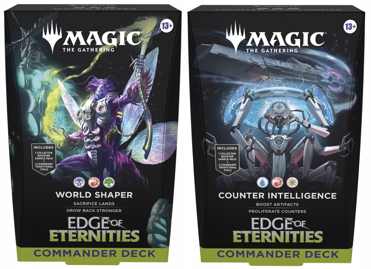 Палуби командирів готові грати відразу після видалення з поля та містять все, що потрібно для відтворення у найпопулярнішому форматі мультиплеєрів у Magic. Edge of Eternity Tokens