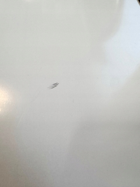 Продукт після повернення, підноси маркерів немає. Дошка має 4 незначні пошкодження на магнітній поверхні. Немає оригінальної упаковки.