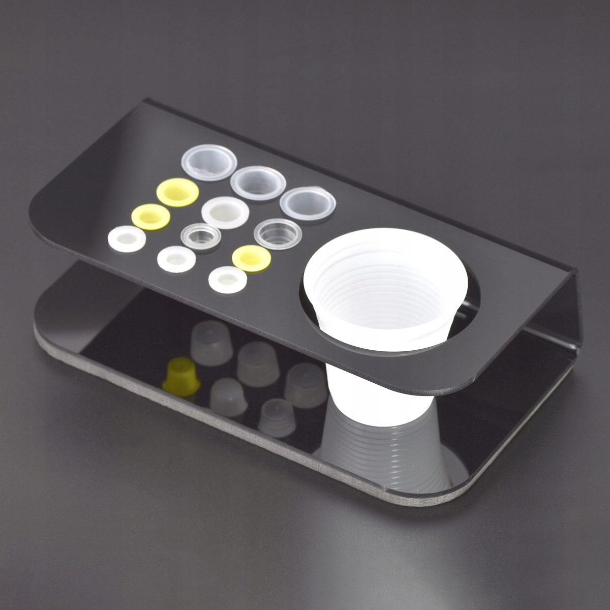 виготовлений з густого чорного оргскла.