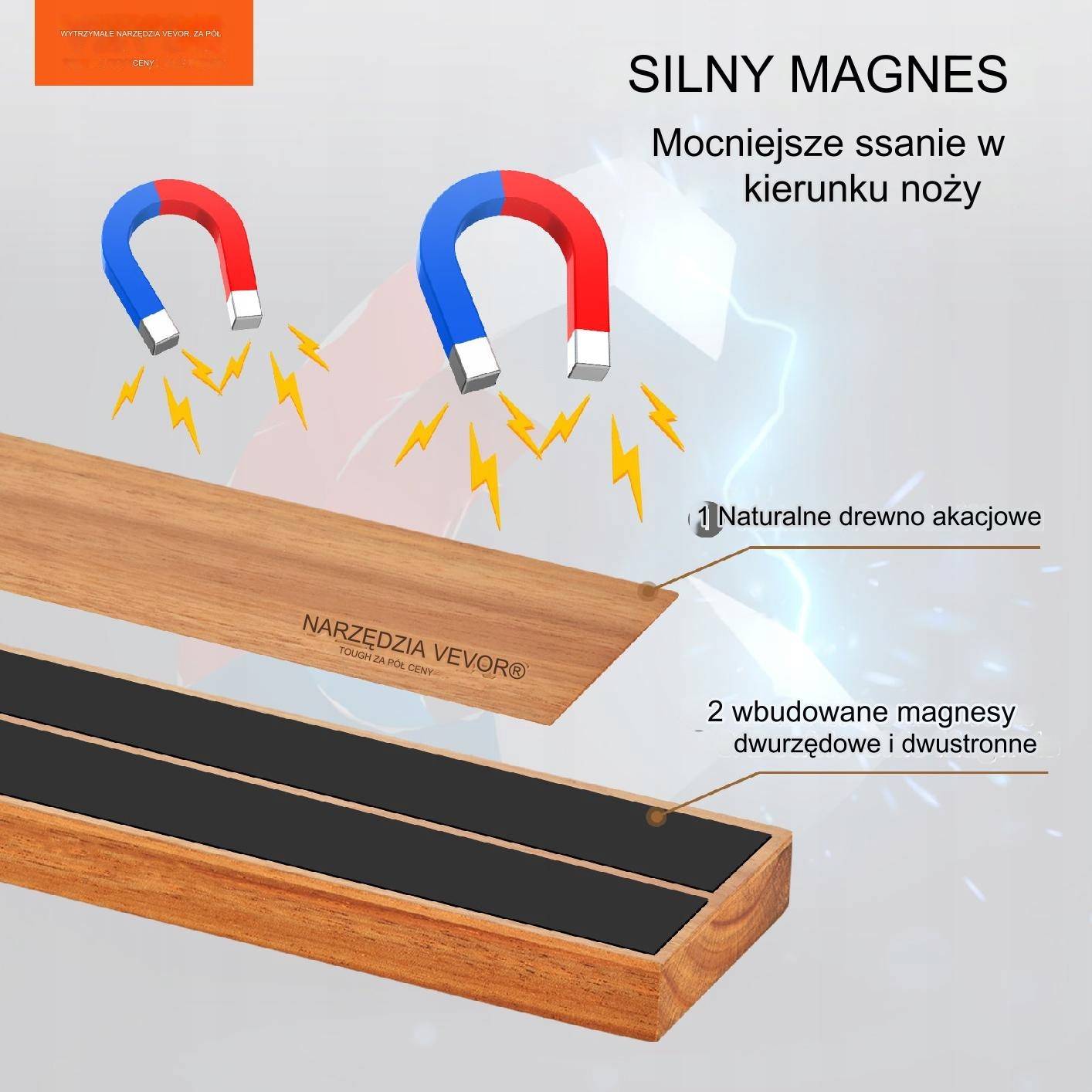 Завдяки високоміцним дворядним магнітам ножі тримаються стійко, виключаючи ризик випадкового падіння. Це сучасне рішення робить зберігання ножів простішим і безпечнішим, а захаращені стільниці та хаотичні ящики відходять у минуле.