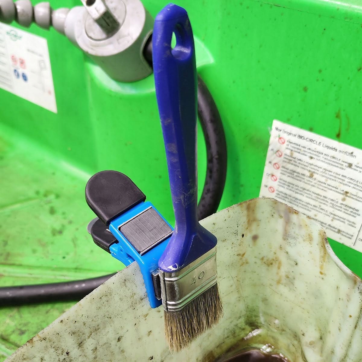 Суцільна магнітна ручка (затискач) дозволяє зручно надіти пензлик під час малювання, щоб фарба капала безпосередньо у відкриту або іншу страву. /p>