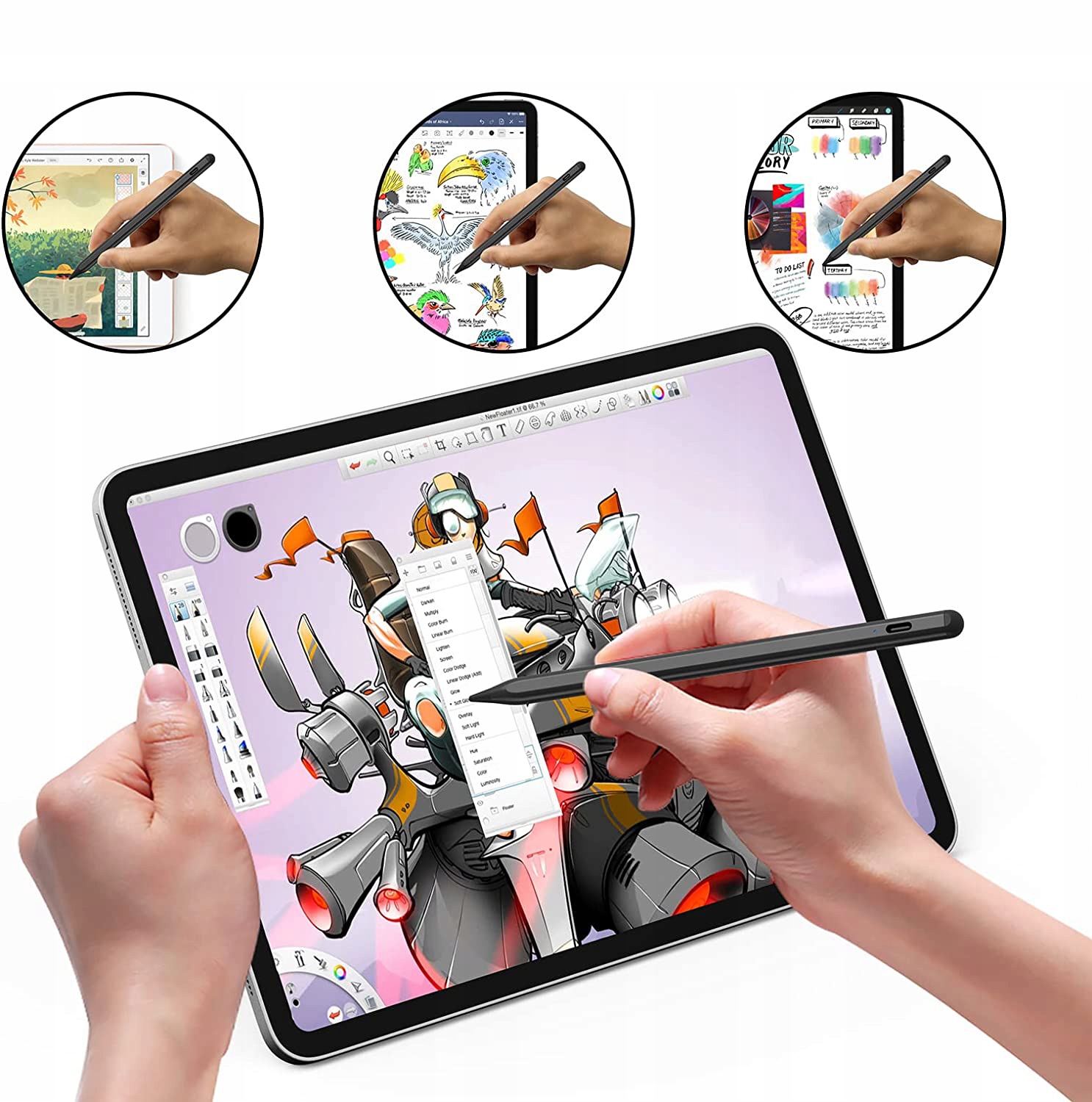 🌈 торкайтеся верхнього перемикача, щоб запустити і закрити стилус. 10 годин безперервного використання, 60 хвилин зарядки, 60 днів в режимі очікування, ручка смартфона автоматично вступає в сон через 5 хвилин бездіяльності, щоб заощадити енергію.