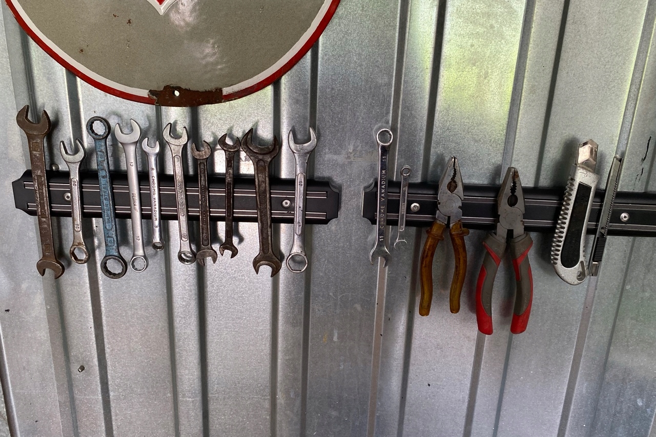 - Магнітну стрічку також можна повісити в гаражі для металевих інструментів