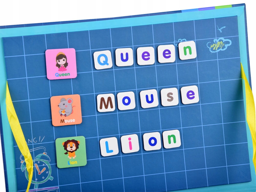 Алфавіт Вивчати літери та слова з раннього дитинства завжди добре. Набір складається з цілих 134 елементів, серед яких малі та великі літери, картинки з назвами англійською та картинки з кольорами. Весь набір магнітного алфавіту укладено в тверду обкладинку, що імітує книгу. Відкривши листа, малюнки можна приклеїти на магнітну дошку.