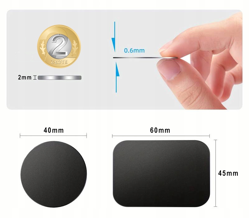 Пластини виготовлені з тонкого та гнучкого металу, тому вони ідеально підходять як під телефоном, так і безпосередньо на його корпусі. Вони не викликають деформації справи, а також не заважають щоденному використанню телефону.