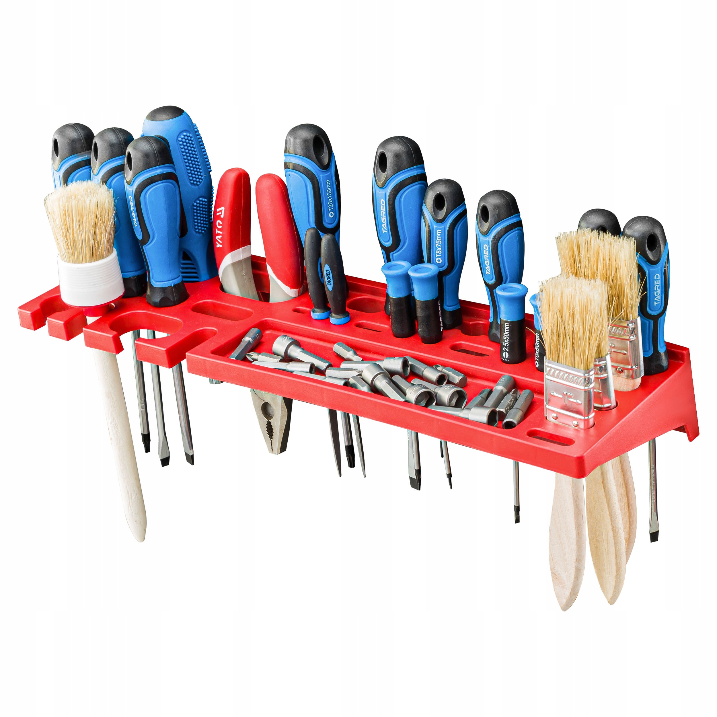 Одним з найважливіших елементів набору є власники інструментів та полиці , фіксовані на платі горизонтально дозволити прозорі організувати всі необхідні інструменти. Невикористаний простір над робочою панеллю - це ідеальне місце для дошки інструментів , що забезпечує доступ під рукою. Представлений набір включає ручки та полиці інструментів відповідно до специфікацій: