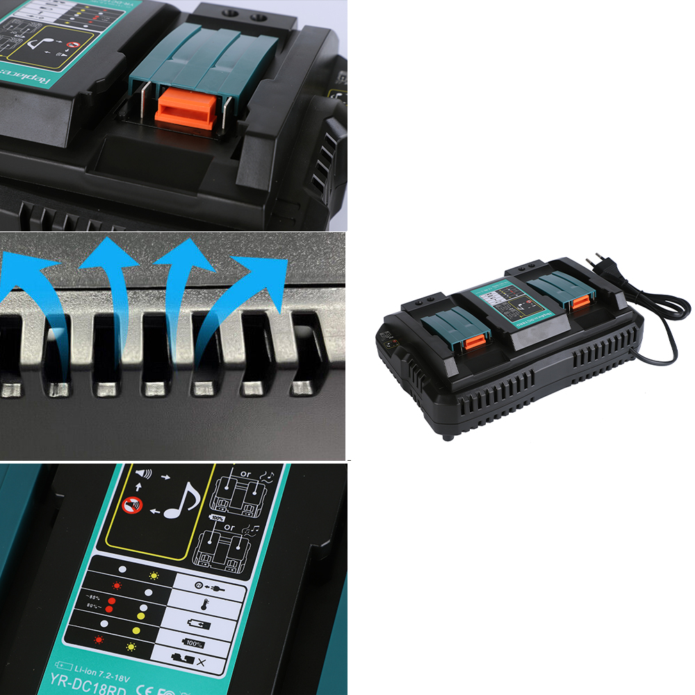 Цей літій-іонний зарядний пристрій DC18RD може заряджати 2 батареї Makita.