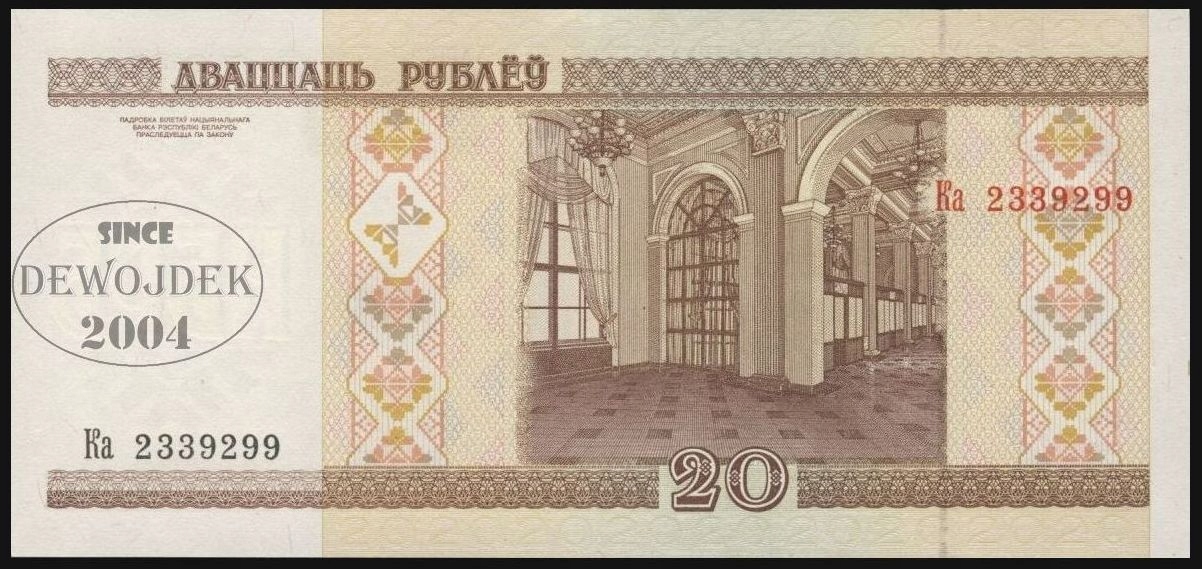 Макс-Білорусь 20 рублів 2000 сир Ка # Р24 # УНК
