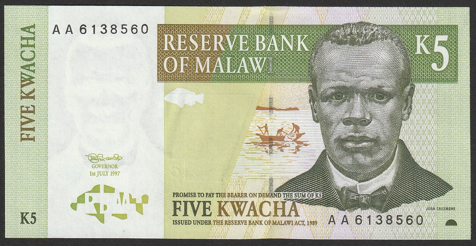 Malawi 5 kwacha 1997 - AA - stan bankowy UNC