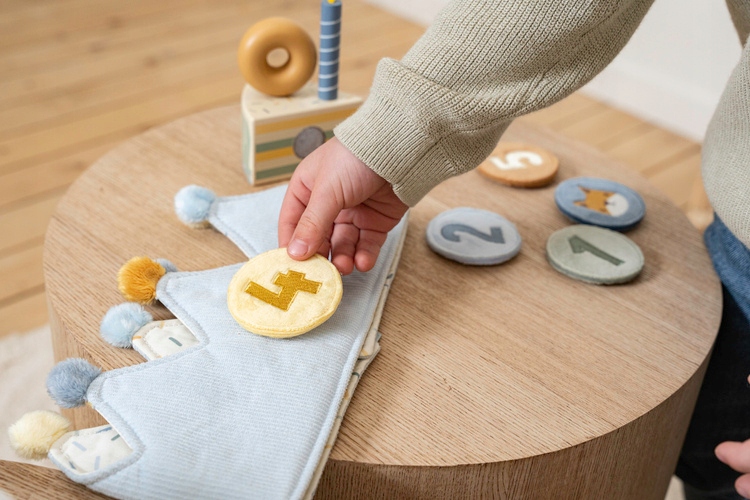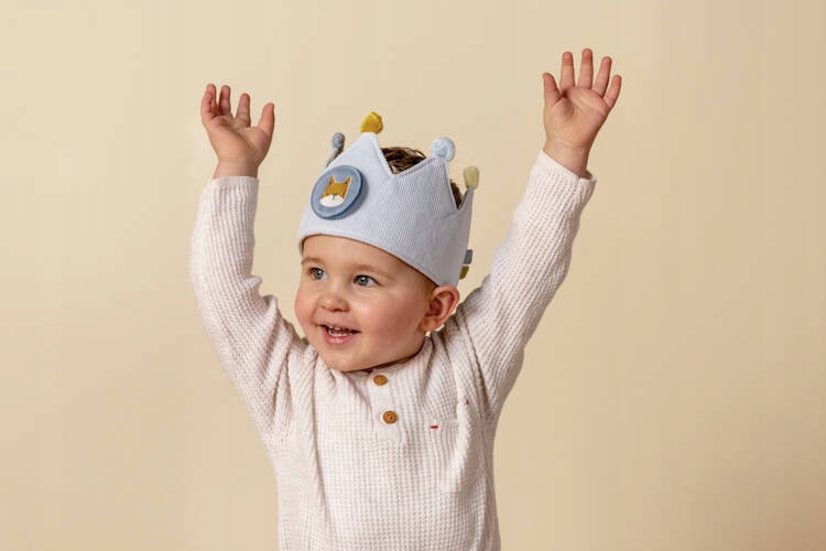 4 З днем народження! Святкуйте стильно завдяки цій чарівній коронці на день народження та додайте трохи магії в цей особливий день. Він містить взаємозамінні цифри від 1 до 5, що робить його ідеальним для святкування наступного дня народження вашого малюка. Прикріпіть номер дня народження до корони та захопіть ці цінні моменти! Ви також можете вибрати пластир лисиці, коли ваша дитина хоче стати королем або королевою щоденної землі заклинань. Корона виготовлена з м'якої прокладеної та смугастої тканини у світло -блакитному кольорі, увінчана барвистими помпом. Кріплення на липучках дозволяє коронці збігатися і рости з дитиною. Подивіться, як ваша дитина з гордістю носить корону, демонструючи свій вік з кожною посмішкою та хихиканням. Приємного святкування! Це чудова ідея для подарунка та ідеального доповнення для інших іграшок з маленької голландської.