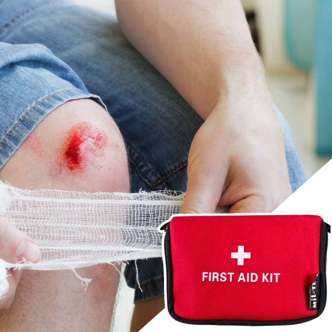 Набір першої допомоги оснащений основними елементами, необхідними для надання першої допомоги , включаючи: