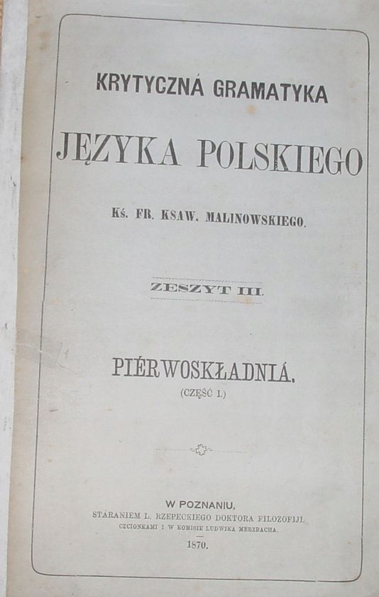 MALINOWSKI 1870 Krytyczna Gramatyka języka Polskiego - PIERWOSKŁADNIA