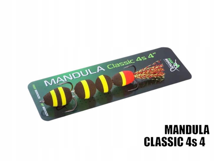 Класичний 4S 4 "Мандула - складається з 4 сферичних сегментів - завдяки цій приманці наживає більшу мобільність у воді. Оснащений двома гострими трійниками з числами 2 та 4. Край на хвості, виготовленому з високоякісної люреку, яка додатково послаблюється вручну на етапі виробництва мандули. щука, окуня, сома і навіть ASP.