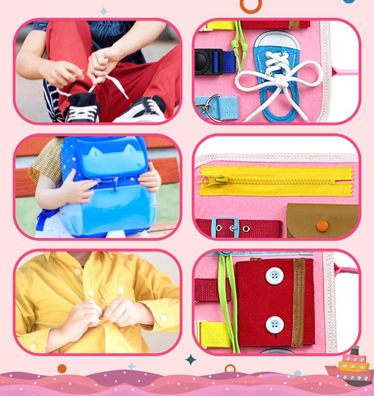 рожева дошка зайнята дошка - іграшки Монтессорі та подарунки для хлопчиків та дівчат. Навчальні іграшки для маленьких дітей, які викладають життєві навички. 4