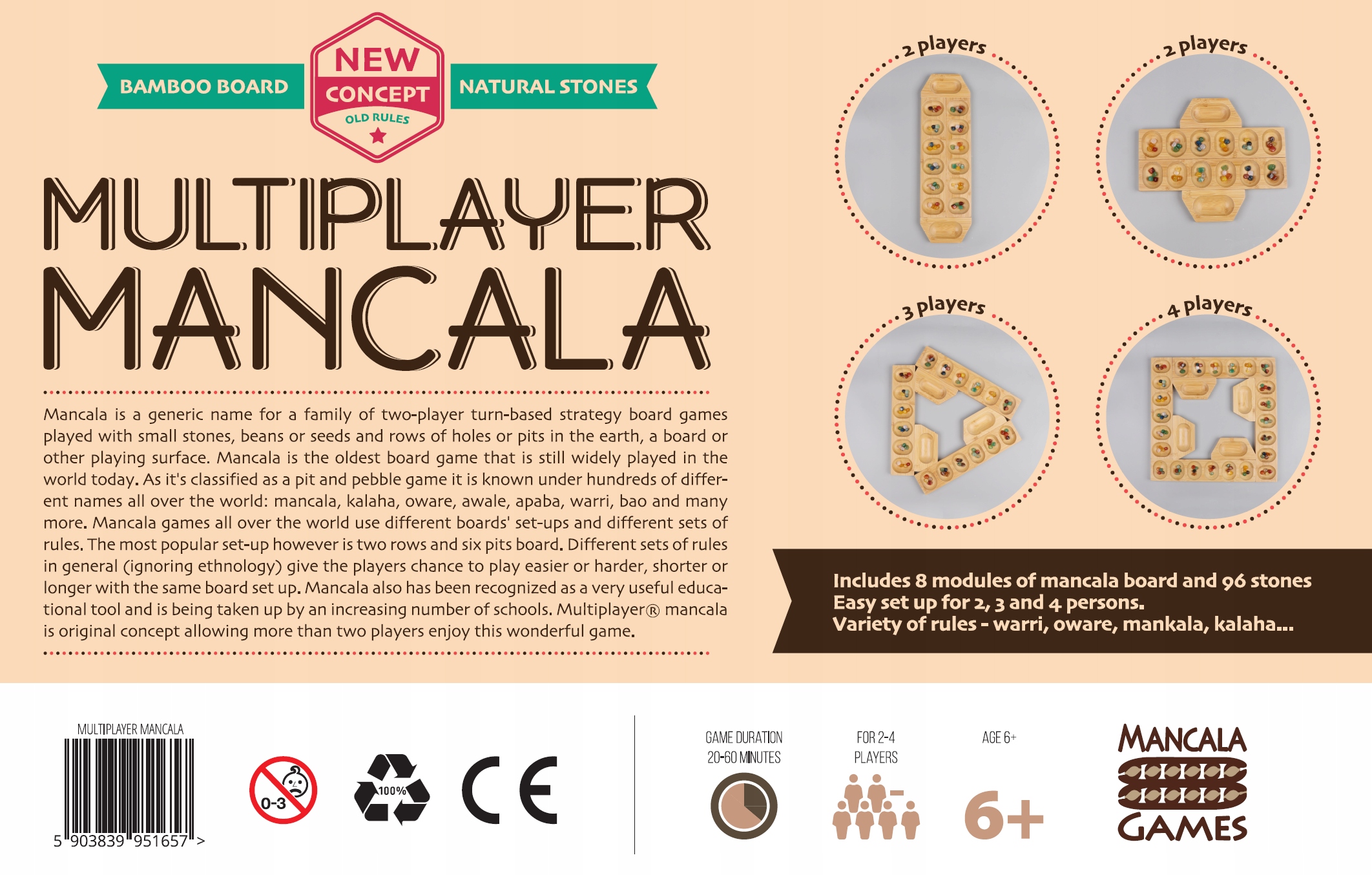 Multiplayer mancala (багатокористувацька манкала) - це оригінальна концепція, яка дозволяє більш ніж двом гравцям насолоджуватися чудовою грою mancala.