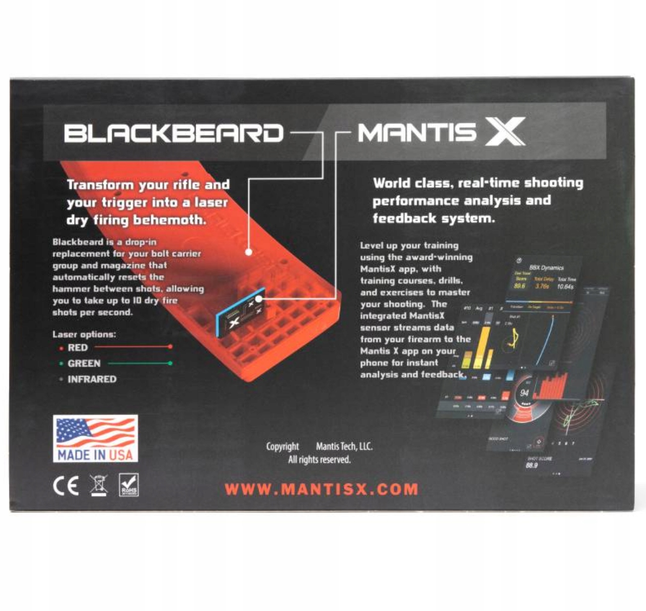 Blackbeardx використовує технологію Mantisx, яка повністю змінила спосіб вдосконалення стрільців. Надання зворотного зв'язку з реальними часами щодо техніки зйомки, а також інтелектуальні поради та аналіз діяльності за допомогою програми Mantisx Pistol/Rifle.