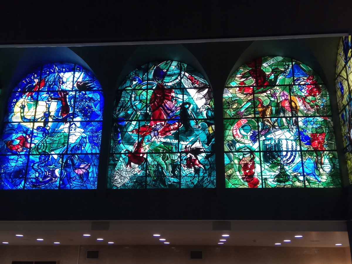 Дванадцять вітражів, створених Марком Шагалом для синагоги медичного центру університету Хадасса в Єрусалимі, символізують дванадцять племен Ізраїлю, які були благословенні Яковом і Мойсеєм у знаменитому ліричні вірші, що завершують Книгу Буття і Повторення Закону: Рувим, Симеон, Левій, Юда, Завулон, Іссахар, Дан, Ґад, Ашер, Нефталим, Йосип і Веніямин. Суть «Єрусалимських вікон» полягає в кольорах, якими Шагал продемонстрував своє вміння оживляти пластичний матеріал і перетворювати його на світло. Оскільки закон про мозаїку забороняє зображувати людську фігуру, яка є образом Бога, Шагал створив царство зірок, стихій і тварин, царство, в якому людська фігура відсутня лише для того, щоб бути представленою більш універсально. Цикл племен, який є циклом людських поколінь, підпорядкований універсальній динаміці світла. Система, встановлена вікнами, ідеально відповідає біблійному циклу, оскільки кожне з них становить незалежне ціле і водночас взаємодіє з іншими, щоб посилити вираження спільного повідомлення: доля ізраїльтян в Обітованій землі та доля людини на землі.