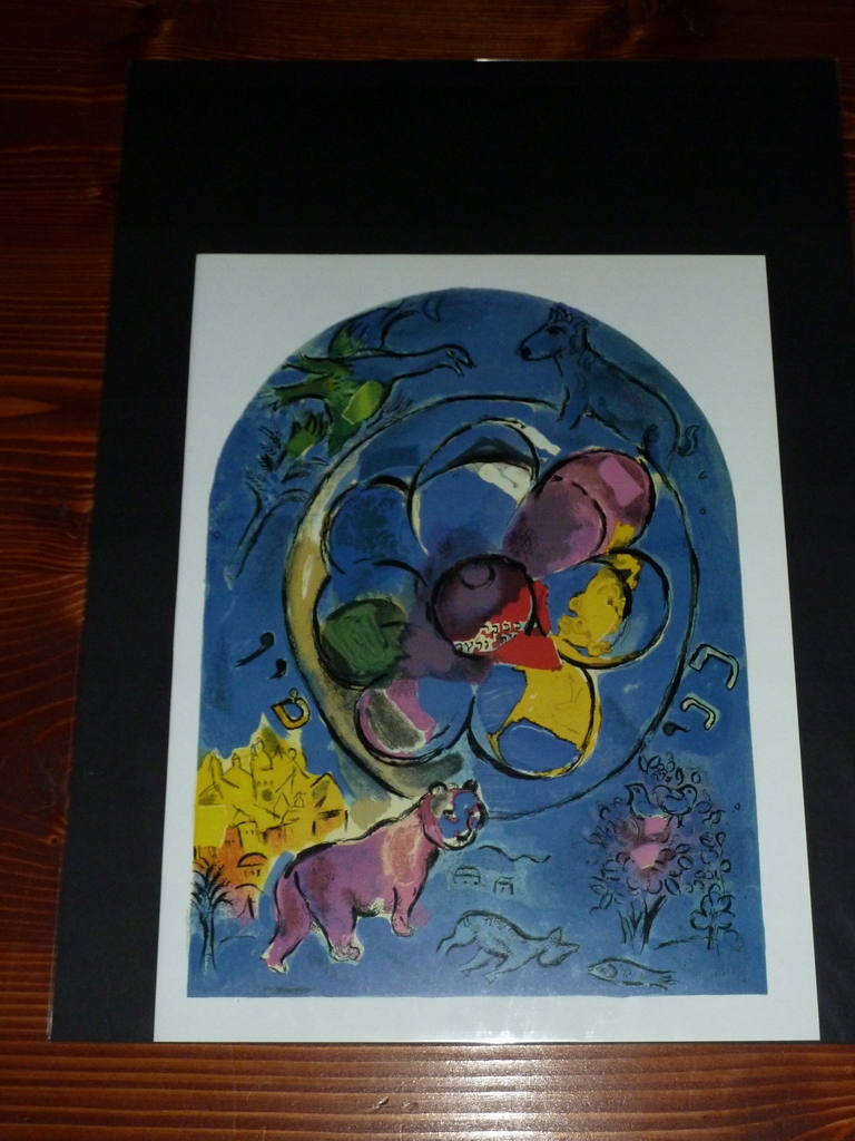 пропонуюілюстрацію Марка Шагала, опубліковану Park Lane New York для серії «Єрусалимські вікна», створені у вигляді вітражів для синагоги м. медичний центр університету Хадасса в Єрусалимі. Ілюстрація була опублікована на щільному папері в Японії в 1988 році. Інша сторона паперу порожня. Ілюстрація ніколи не була оформлена в рамку, у дуже хорошому стані.
