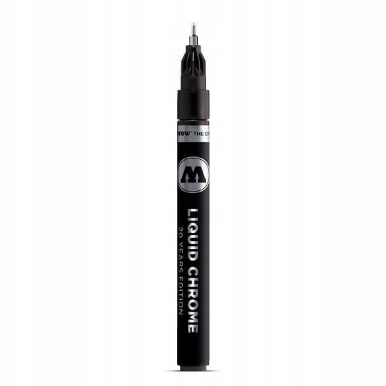 Маркер Molotow Liquid Chrome містить чорнило на основі спирту. Чорнило високонепрозоре, глянцеве з ефектом дзеркального відображення. Лінії, зроблені чорнилом Liquid Chrome, стійкі до стирання та подряпин, а також до УФ-променів.