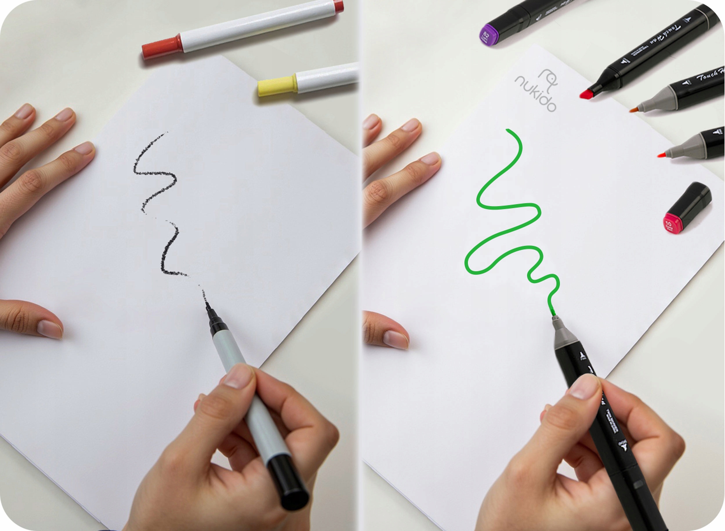 - Маркери з двома наконечниками є ідеальним інструментом для вивчення каліграфії та написів.