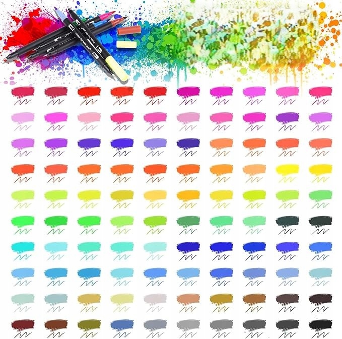 Поєднайте точність тонкої ручки (0,4 мм) з рідкими щітками (1-3 мм) - ідеально підходить для деталей, затінення та швидкого заповнення великих областей. Надихаючі кольори