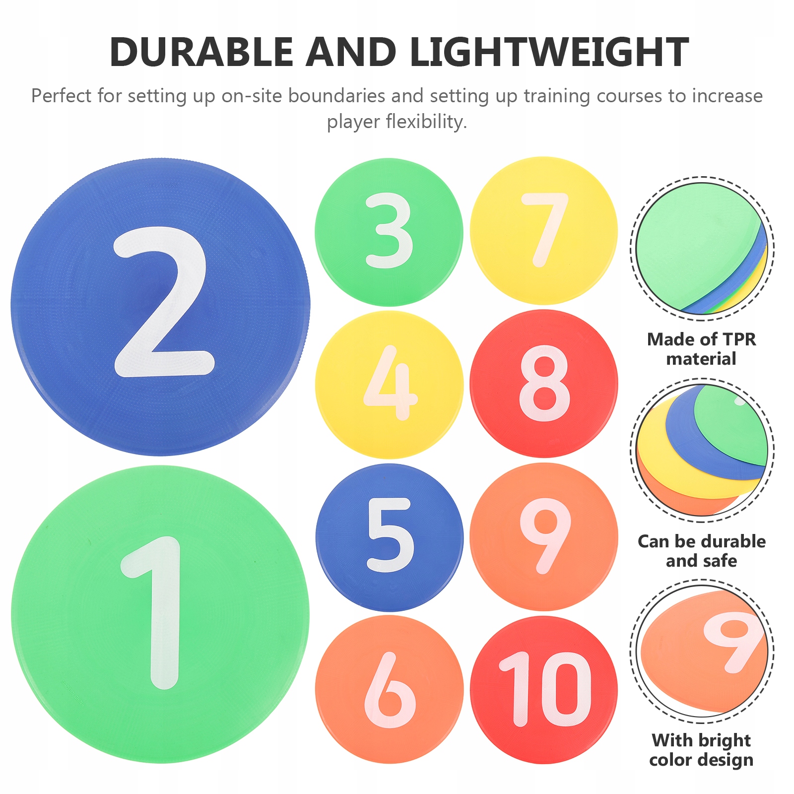 Бажаєте купити професійні футбольні диски з тренувальними написами? Ось наші щитки для футбольних тренувань на вибір. Яскравий колір і особливості роблять наш продукт практичним у використанні. Він виготовлений з матеріалу TPR, міцного та довговічного у використанні. Краї гладкі та круглі, без задирок і не пошкодять шкіру. Тож приходьте та купуйте зараз!
