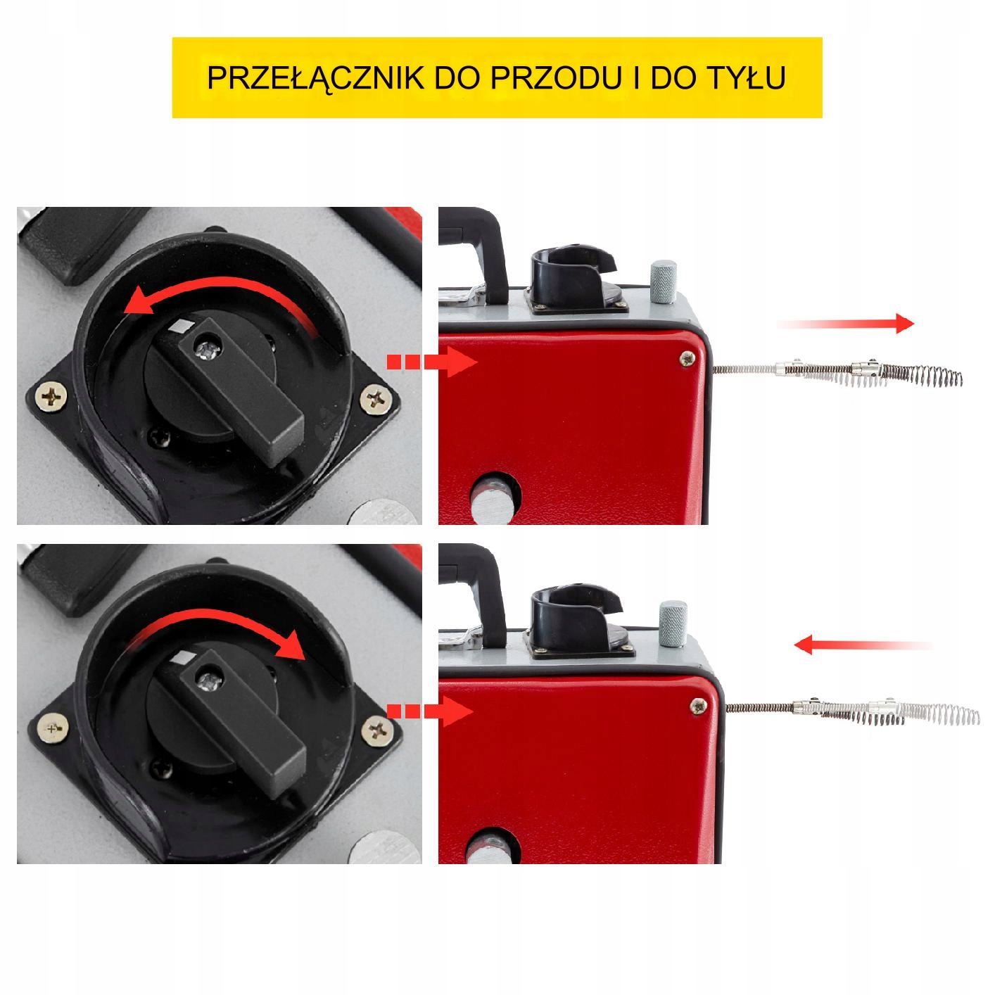 Розроблений для зручності використання, перемикач напрямку дозволяє змінювати напрямок пристрою за допомогою однієї кнопки. Це просте рішення дозволяє швидко й ефективно впоратися із засміченою трубою.