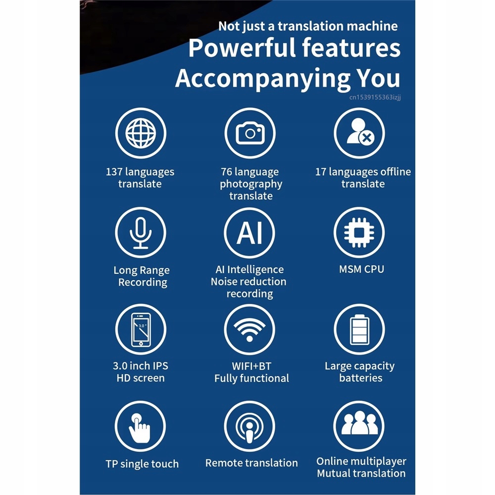 арабська, китайська X2, голландська, англійська, французька, німецька, хінді, індонезійська, італійська, японська, корейська, польська, португальська, російська, іспанська, іспанська, Тха -В'єтнам. Просто сфотографуйте, і пристрій автоматично розпізнає текст і перекладе його в обрану вами мову. Завдяки цій функції Z9S ідеально підходить для подорожей, покупок за кордоном або для роботи з документами іноземною мовою. Економте час і уникайте непорозумінь - одним клацанням!