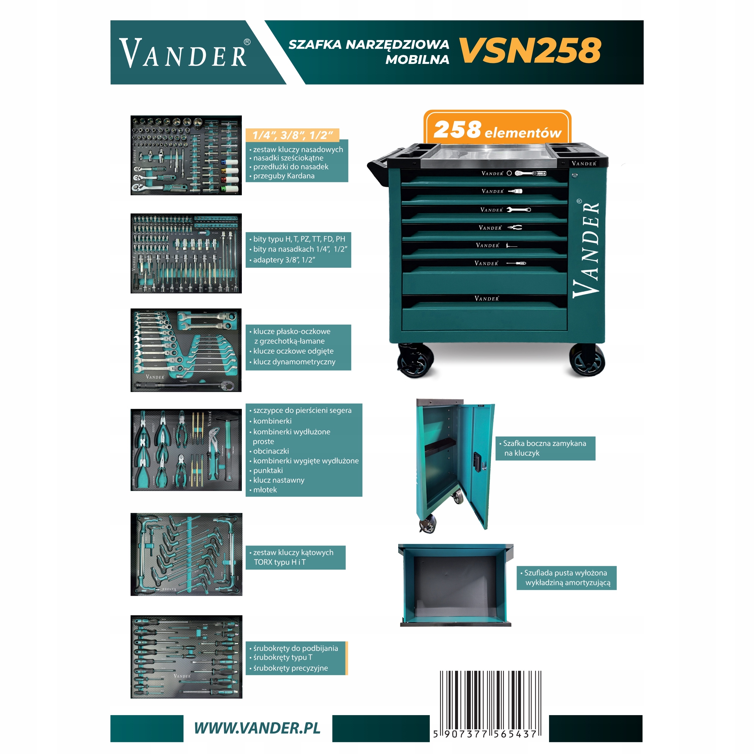 Мобільна майстерня для інструментів із 258 інструментальними елементами Vander VSN258