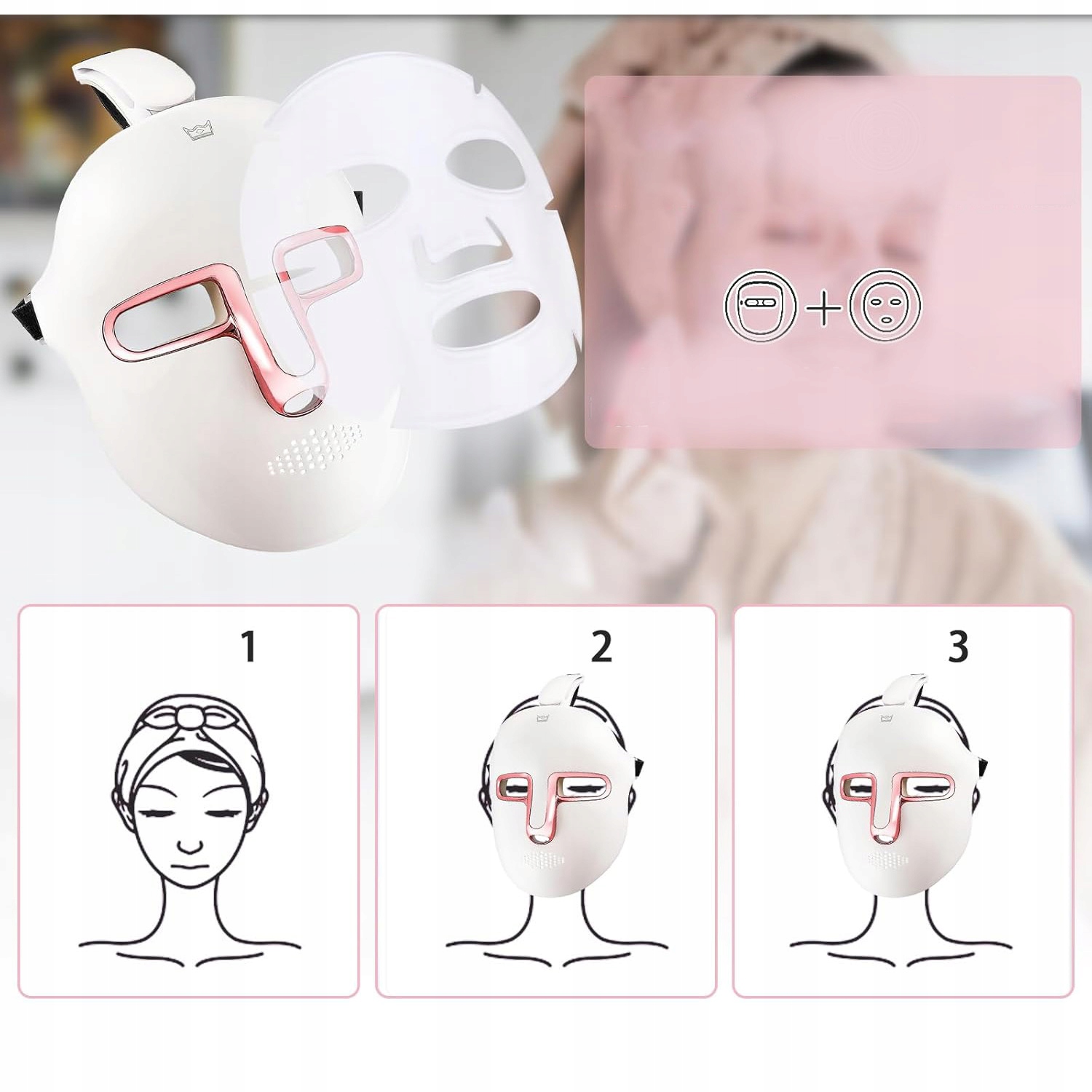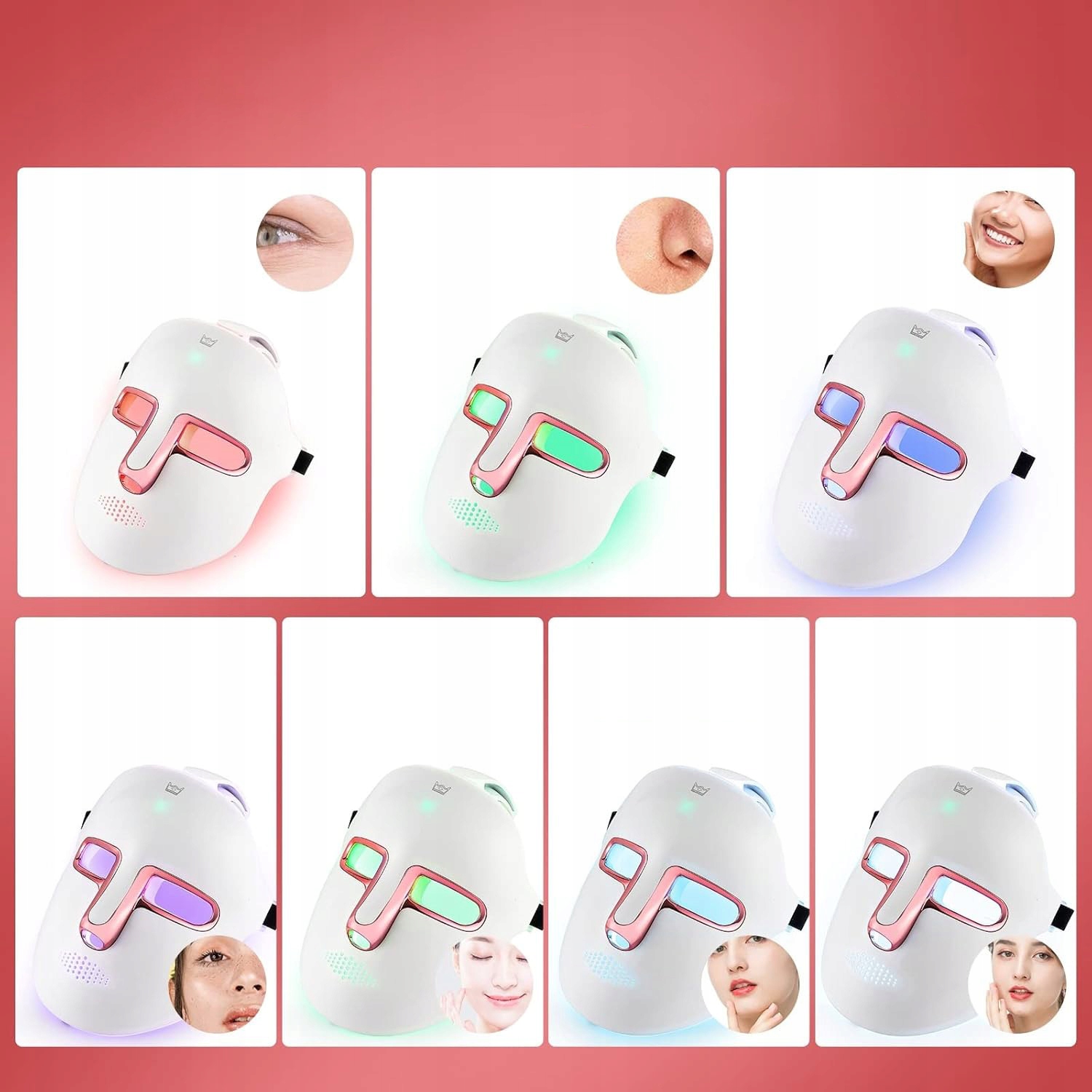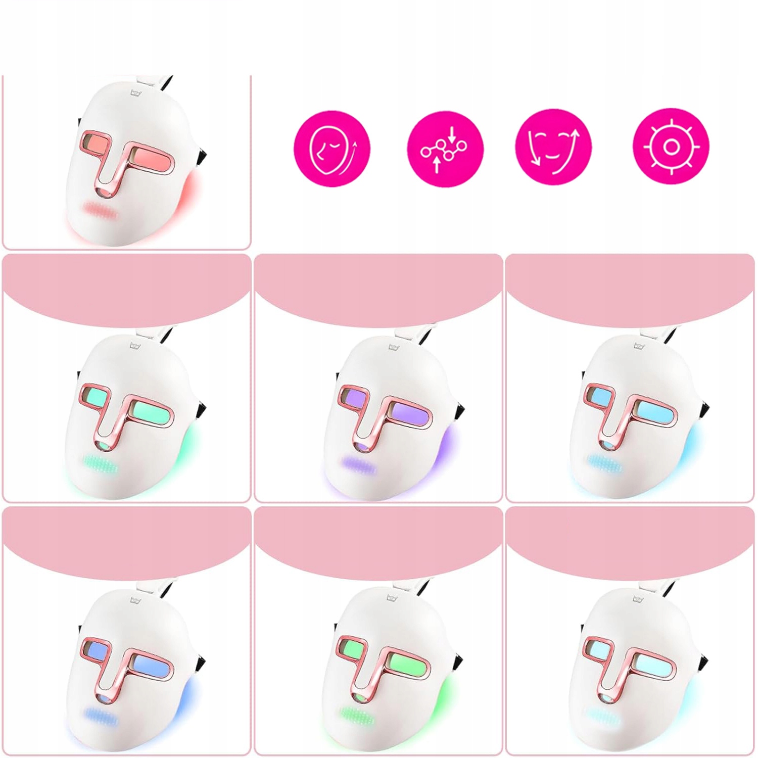 - 7 кольорів світлодіодів, що задовольняють, задовольняють різні потреби шкіри. Це покращує матову шкіру. Червоне світло може допомогти у боротьбі зі старінням, фіолетове світло може підтримувати лімфатичне дренаж та напругу шкіри, ціаноне світло може полегшити напругу шкіри, а біле світло може прискорити ріст і загоєння клітин шкіри. Носіння, не викликає тиску на обличчі і оснащена інвалідами для очей, які добре захищають очі під час вживання та запобігають дискомфорту очей, викликаних світлом, і їх можна використовувати багато разів.