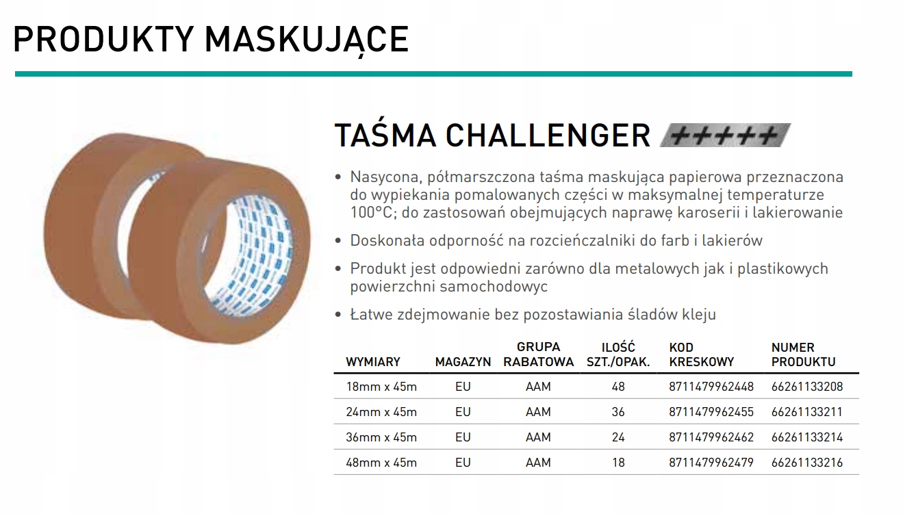 насичена напівзабезпечена паперова стрічка, призначена для випічки пофарбованих деталей при максимальній температурі 100 ° C, для застосування, що покривають відновлення та лакування тіла.