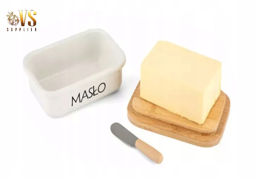 Маслянка є синонімом краси, елегантності та універсальності. Вишуканий колір кераміки в поєднанні з деревиною акації чудово виглядає на будь-якому столі. Також на чохлі є місце для ножа з високоякісної нержавіючої сталі, дерев'яна ручка якого чудово доповнює все. Масленниця чудово виглядає в комплекті з цукорницею і глечиком з цієї ж серії.