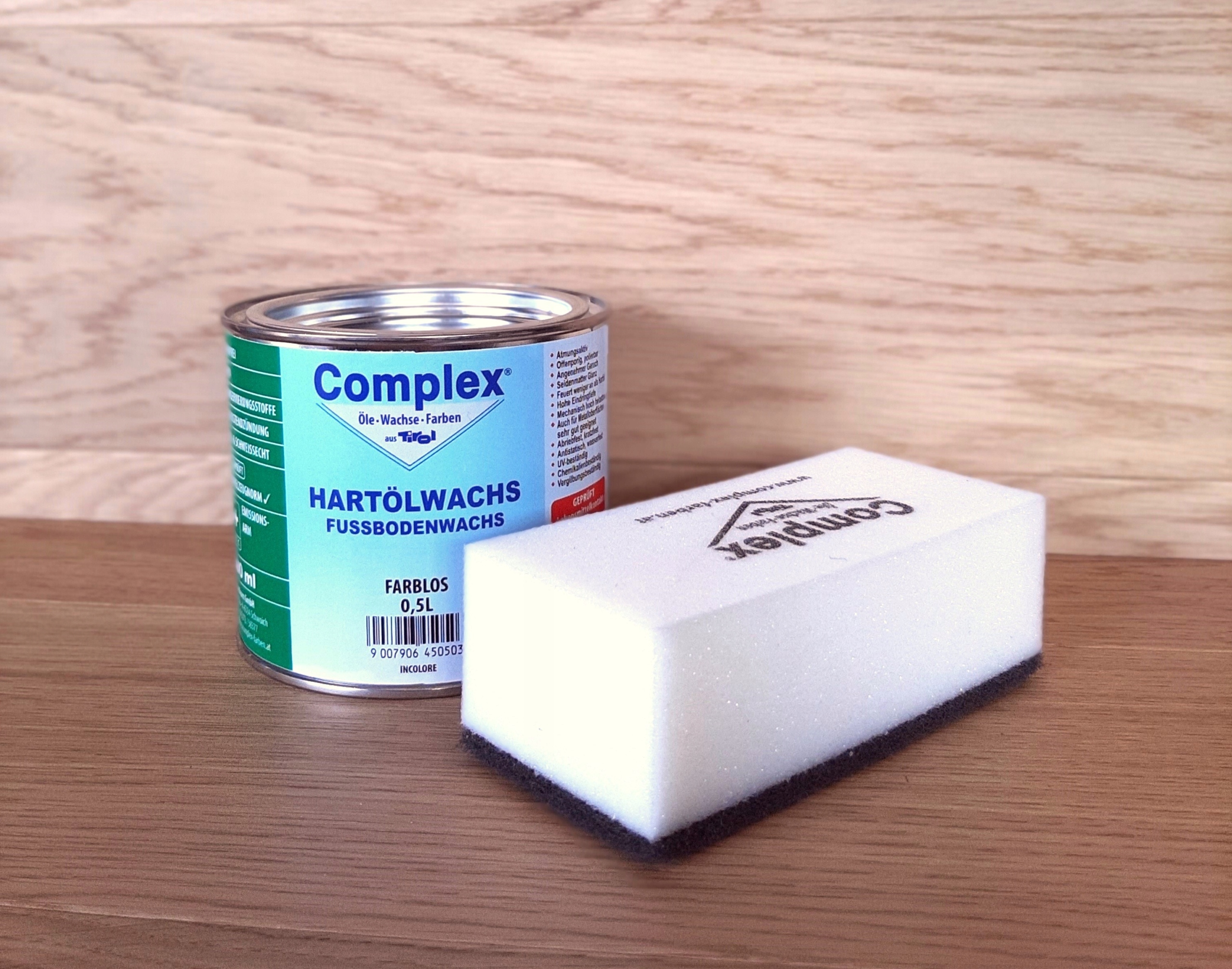 Hartölwachs Complex - це твердий масляний віск на основі рослинних олій, бальзамічних смол і натуральних восків (карнаубський віск) і спеціальних ефірних олій (тірольських альпійських трав). Повністю зберігає природні властивості деревини - дозволяє поверхні дихати, залишає пори відкритими та регулює вологість.