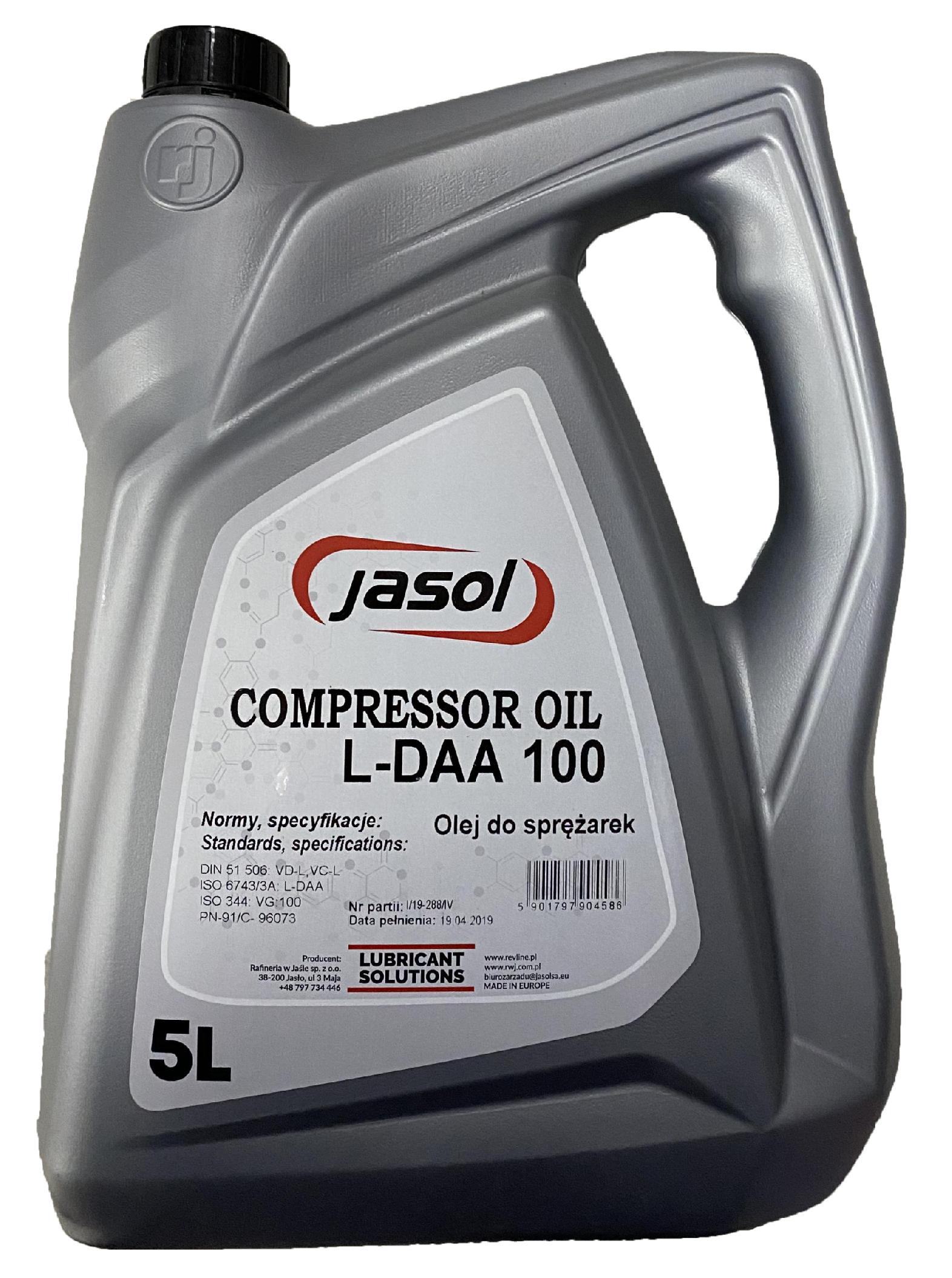 Компресорна олива JASOL COMPRESSOR OIL L-DAA 100 призначена для змащування поршневих, роторних і лопатевих повітряних компресорів з краплинним змащенням у середніх умовах експлуатації.