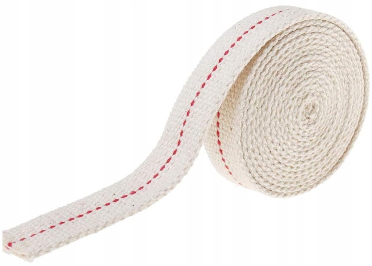 2.Плоский бавовняний гніт шириною 25 мм і довжиною 1 м ідеально підходить для гасових і масляних ламп. Виготовлений з натуральної бавовни, забезпечує рівномірне згоряння та має дуже хорошу провідність палива. Легкий у встановленні та використанні.