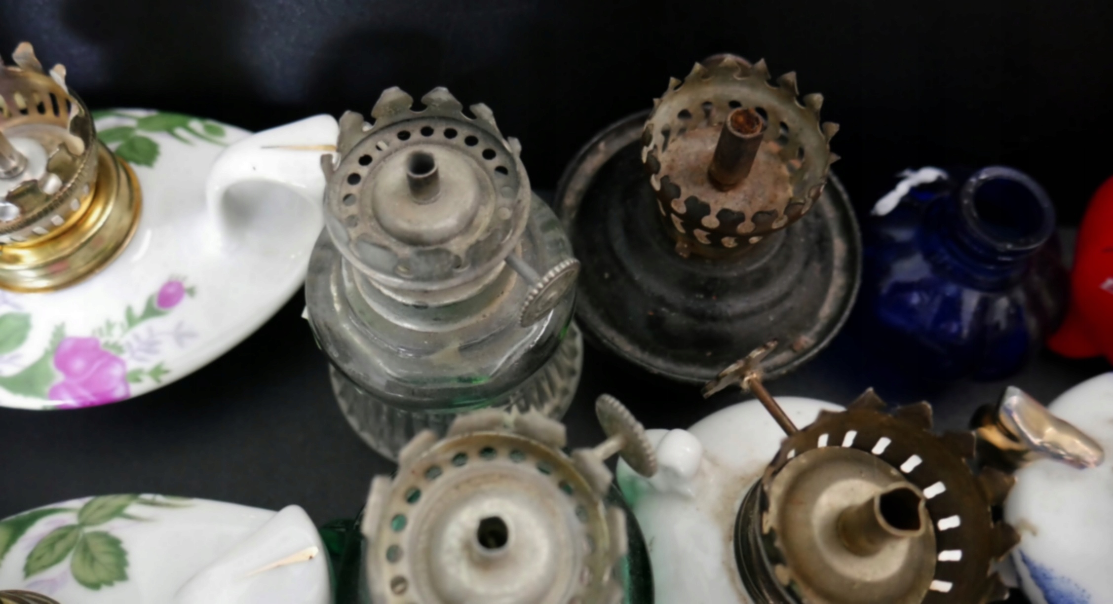 Sale of oil lamps, without shadows, porcelain containers, porcelain glasses