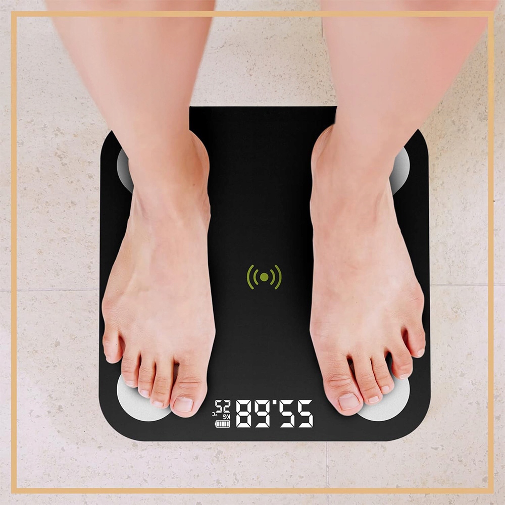⏩⏩- з всебічним аналізом даних про тіло, включаючи масу тіла, ІМТ, відсоток жиру, м’язової маси, води в тілі, вісцеральну жиру, кісткову масу, метаболізм, білок, рівень оживлення та стіл, що не живуть, і безозріло, і безозріло, що може бути підключений до проведення за Bluetooth 4.0 та має iOS 7.0/Android 4.0 або новішу операційну систему). 0,22 фунта до 400 фунтів