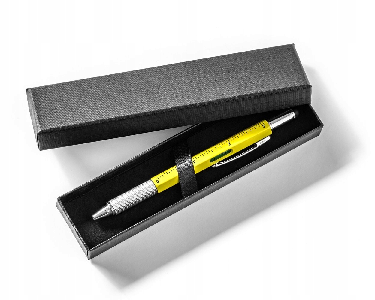Універсальна ручка працюватиме в багатьох ситуаціях і дозволить вам вийти неушкодженим. Навіщо мати ручку, яка лише пише, якщо у вас є ручка, яка має багато застосувань і має набагато більше можливостей. Крім функції письма, наша ручка може використовуватися як т.зв стилус, оскільки він має гумовий наконечник для сенсорних екранів. Відкрутивши його, можна використовувати кінчик викрутки, плоский з одного боку і хрестоподібний з іншого. На корпусі ручки є лінійка в сантиметрах і дюймах (7 см і 3 дюйми) і міні-рівень.
