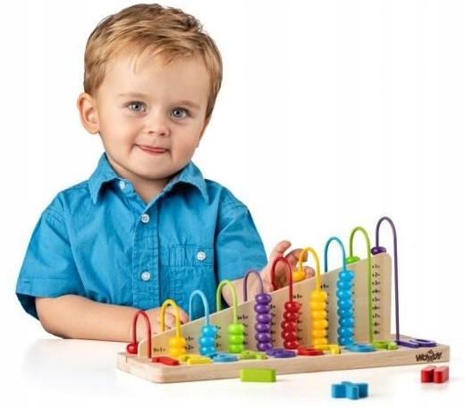 Традиційний Abacus не повинен бути нудним . Ось абсолютно новий продукт у творчій партії продукту Woodyland. Це кольоровий двосторонній абак. Під час гри дитина покращить свою здатність додавати та віднімати . Дії зберігаються на тарілці посередині. З одного боку, це рівняння на основі додавання, а з іншого - віднімати . намистини в потрібних кольорах: червоний, жовтий, синій, зелений та темно -синій . Абак також має числа в діапазоні 1-10 у кольорах, придатних для намистин та 3 символів: плюс, мінус та знак рівності . Навчання полягає у виконанні заходів на бісерах у одних і тих же кольорах. Перевага такого інноваційного Abacus, окрім навчання, - це також навчання на основі простих математичних рівнянь.