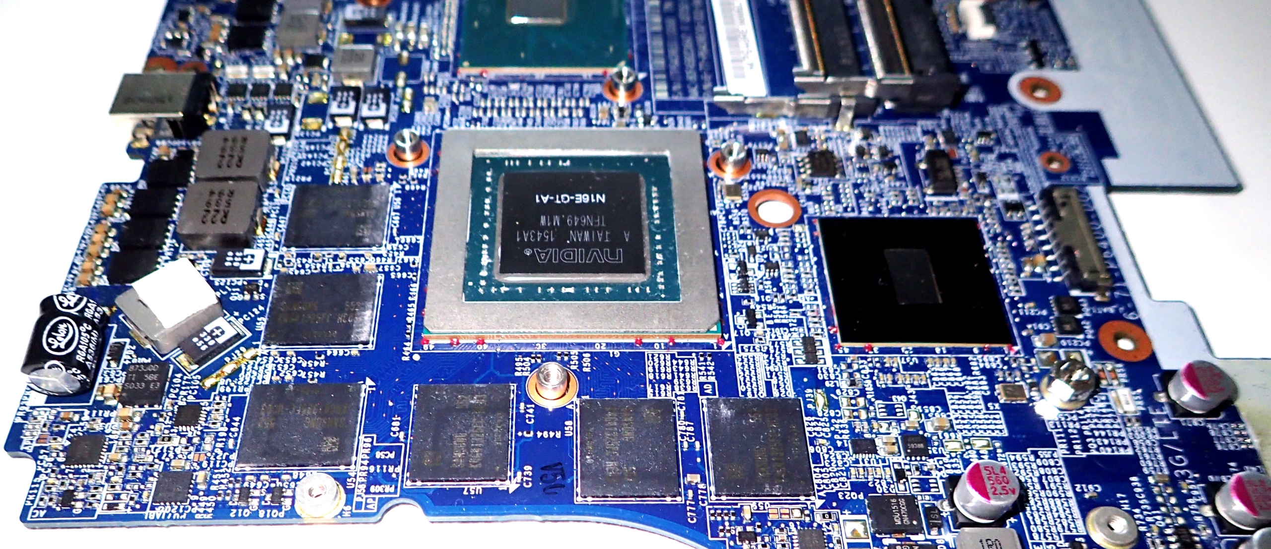 - Плата оснащена процесором Intel i7-6700HQ (SR2FQ) і спеціальною графічною картою NVIDIA GeForce GTX 970M (N16E-GT-A1).