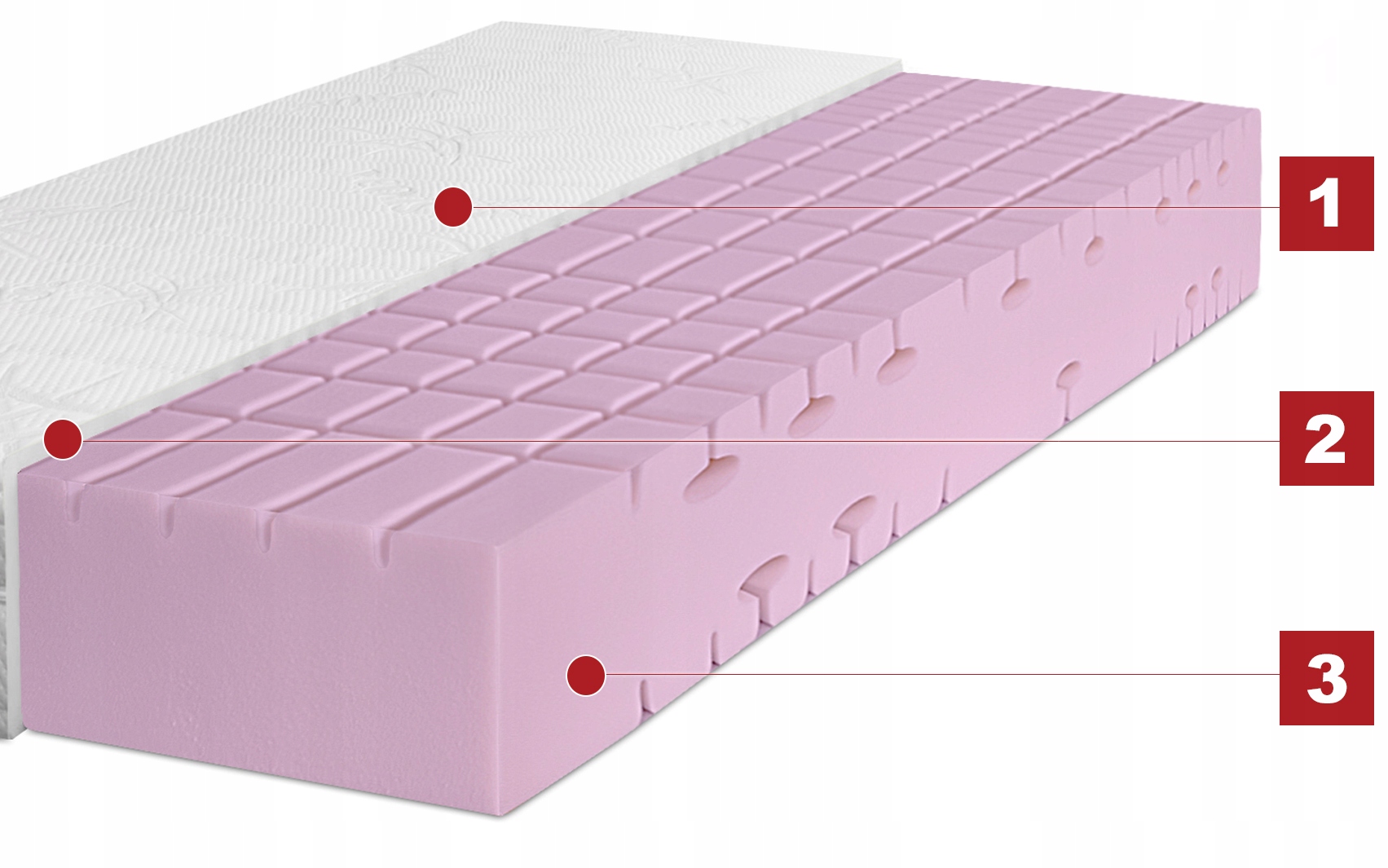 - Профільований поролон - у матраці використовується профільований поролон MaxiFoam, який забезпечує відповідний точковий тиск на тіло, ніжно його масажуючи. Покращує кровообіг і зменшує біль у спині. Це гарантує легкість, натуральність і належну еластичність матраца.