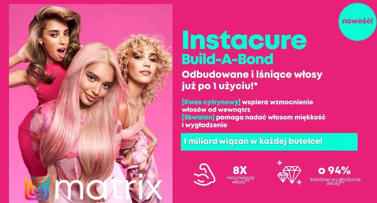Instacure Build-A-Bond -професіонал, відновлюючий діапазон від матриці для догляду за пошкодженим волоссям. Містить лимонну кислоту та присідання. Використовуючи систему, що складається з шампуню, кондиціонера, маски та бальзаму без промивання, волосся на 8 разів сильніше, на 94% більш згладжені і живиться після 1 використання! 230 ° C). Після одного використання волосся виглядають здоровими від коренів до кінців.