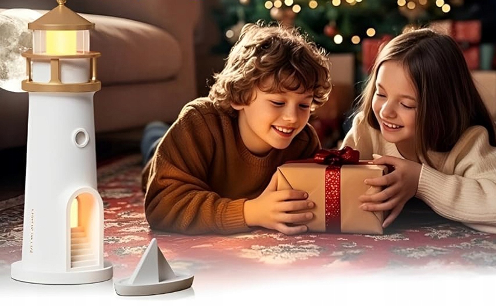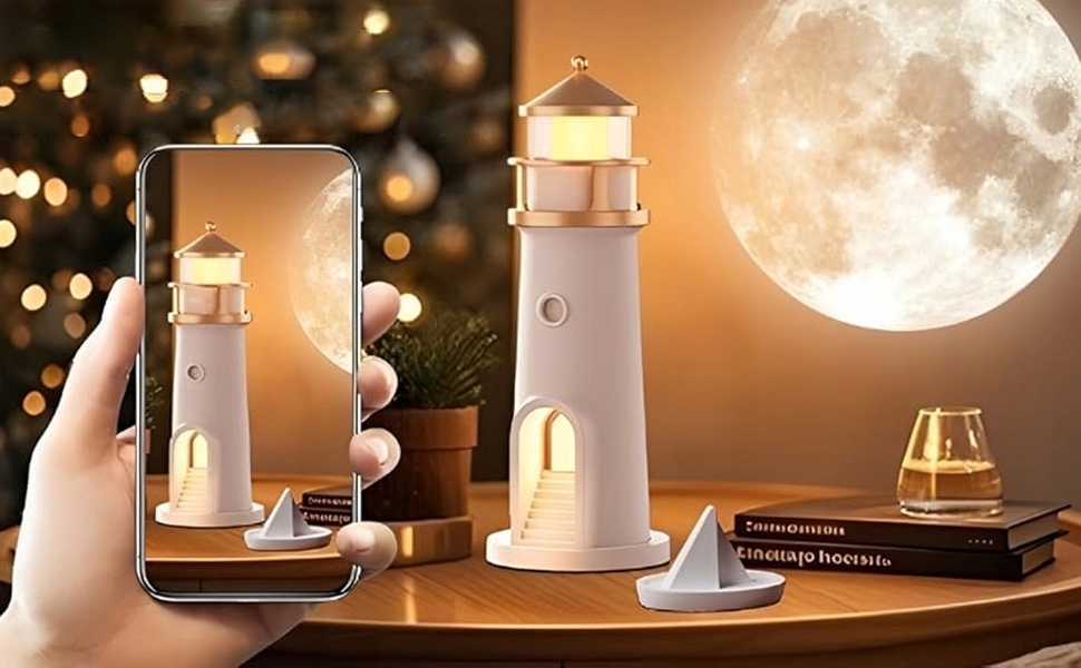 - 🗼 🗼 Класична форма маяка означає, що його можна використовувати як практичну лампу, так і декору, забезпечуючи романтичну атмосферу. Активує режим дистанційного керування, що дозволяє легко регулювати яскравість, автоматичне вимикання та вимикання проекції Місяця.