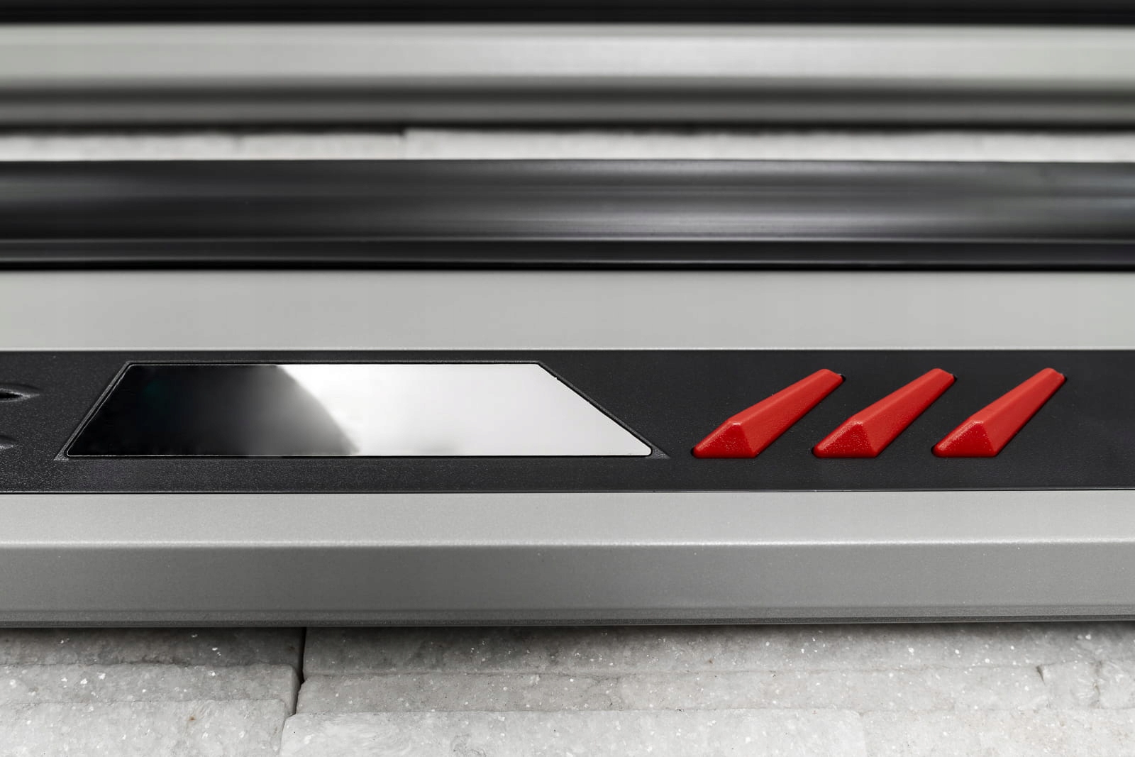 Ми представляємо набір порогів, що поєднують його практичну функцію з надзвичайно декоративним персонажем. Пороги приваблюють око спортивним поєднанням чорних, поздовжніх, сталевих елементів та червоних акцентів. Ретельне поєднання деталей означає, що пороги дозволяють отримати унікальний ефект стилізації, додавши престижному та динамічному акценту автомобілю, відповідно до поточних тенденцій.
